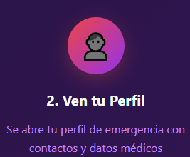 En caso de perdida o situación de accidente o desvanecimiento la persona que lo encuentra escanea el QR y podra ver en su celular el nombre y datos médicos relevaantes adicionales que le dara la posibilidad de enviar whatsapp a la persona declarada para contactar como asi tambien la posibilidad de tener un telefono adicional para contactarse y tambien tendra la posibilidad de enviar la ubicacion exacta de donde se encuentra la persona.